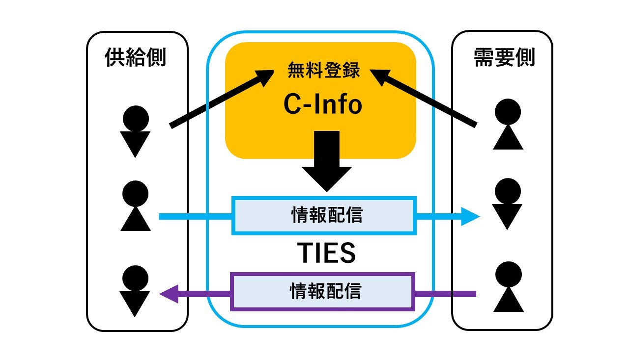 C-Infoのご利用は非常にシンプル。TIESから簡単な情報登録のみ。『登録して情報を待つ』『登録して情報を送る』それだけです。